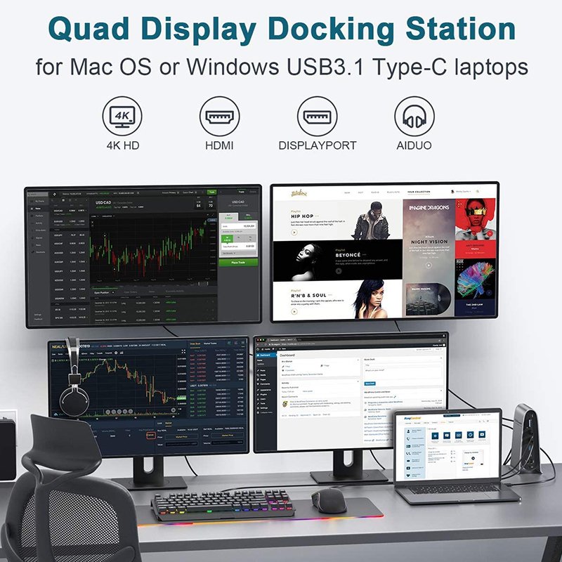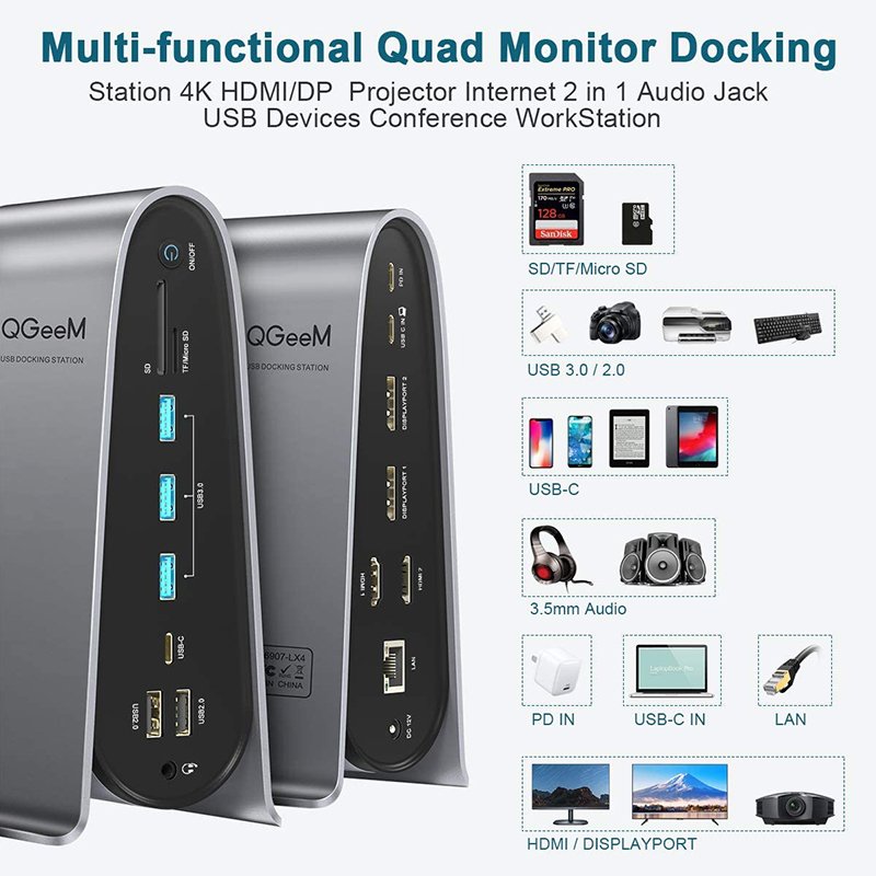 Esta Docking Station é compatível com os computadores portáteis mais recentes e dispositivos inteligentes com uma porta USB Tipo-C