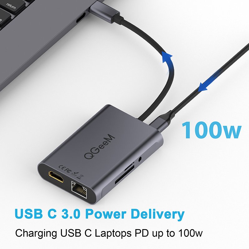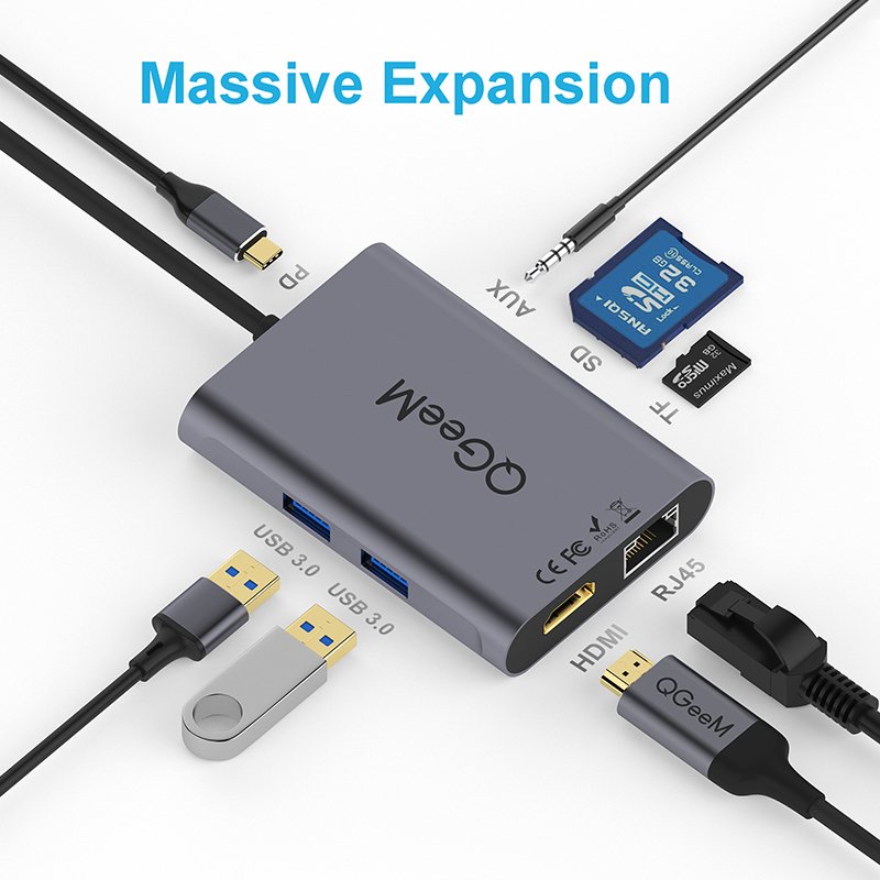 | Interfaces | 2* USB 3.0 com velocidade até 5 Gbps, 1* Porta de carregamento PD, 1* HDMI - 4K@30Hz, 1* RJ45, 1* Leitor de cartões micro SD, 1* Leitor de cartões SD, 1* Jack 3.5mm |