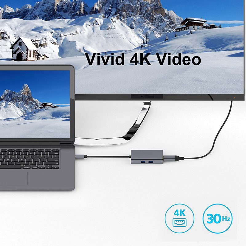 Suporte de interface de Jack 3.5mm para todos os auscultadores standard, reconhecimento automático, dá-lhe desempenho de som em alta resolução. Porta HDMI com suporte vídeo com resolução até 4K@30Hz e 1920x1080 (1080p) a 4K@60Hz. Perfeito para apresentações, noites de cinema, e muito mais.