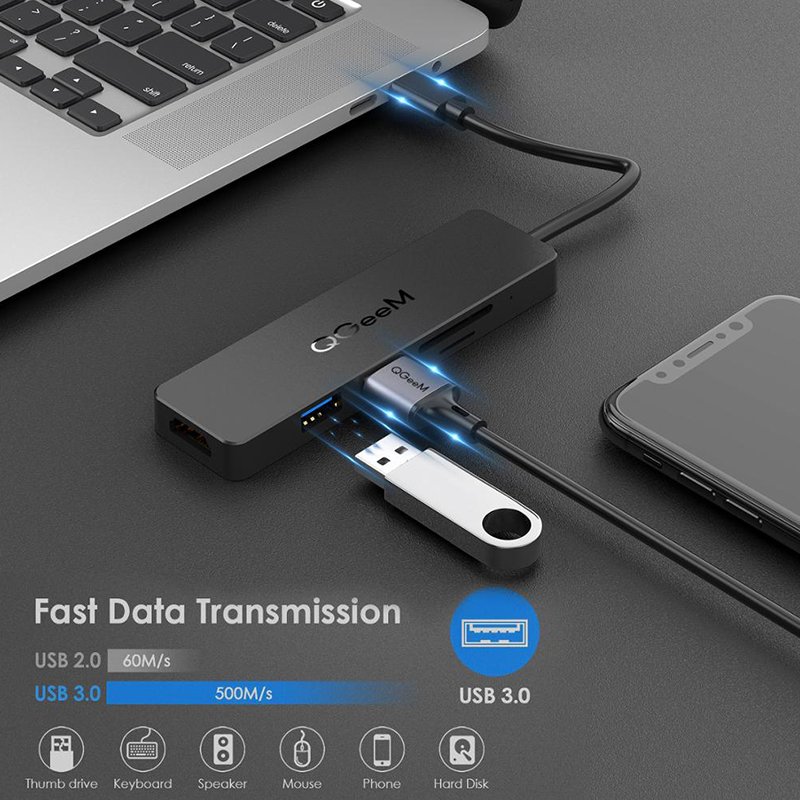 As portas USB suportam taxas de velocidade de transmissão até 5Gbps, com ligação ao smartphone, tablet ou disco rígido para uma transferência de dados sem esforço. Poderá também fazer a ligação de ratos, teclados com / sem fios.