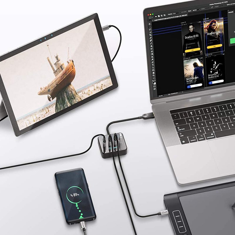 - Compatível com iMac, MacBook, Mac Pro / Mini, Surface Pro, XPS, Notebook PC, Mobile HDD e mais dispositivos. ( Nota: A porta USB 3.0 suporta uma corrente máxima de 1.5A, a velocidade de carregamento é lenta e não é recomendado carregar o dispositivo ligado.)