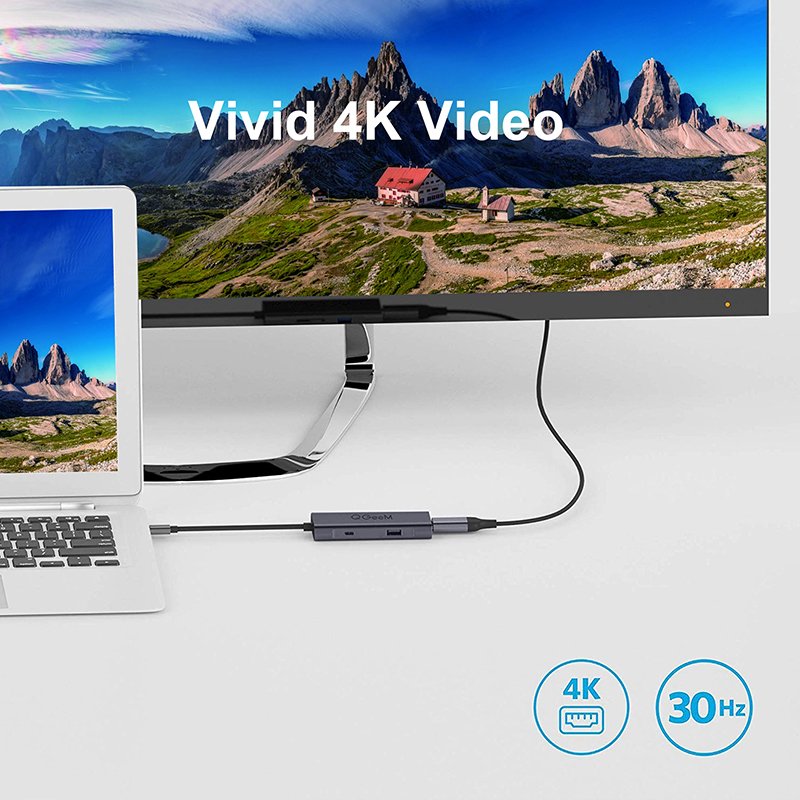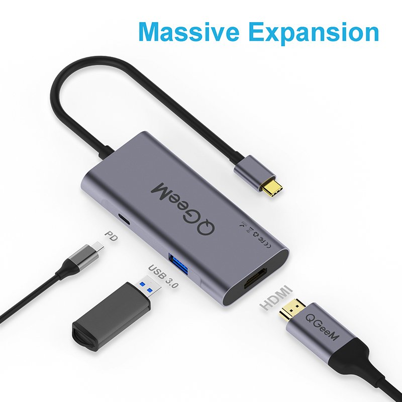 Expanda a porta USB Tipo-C para uma porta USB 3.0, uma porta HDMI 4K e uma porta de carregamento PD.