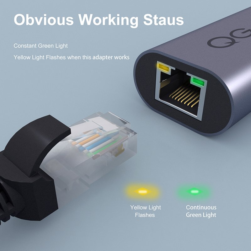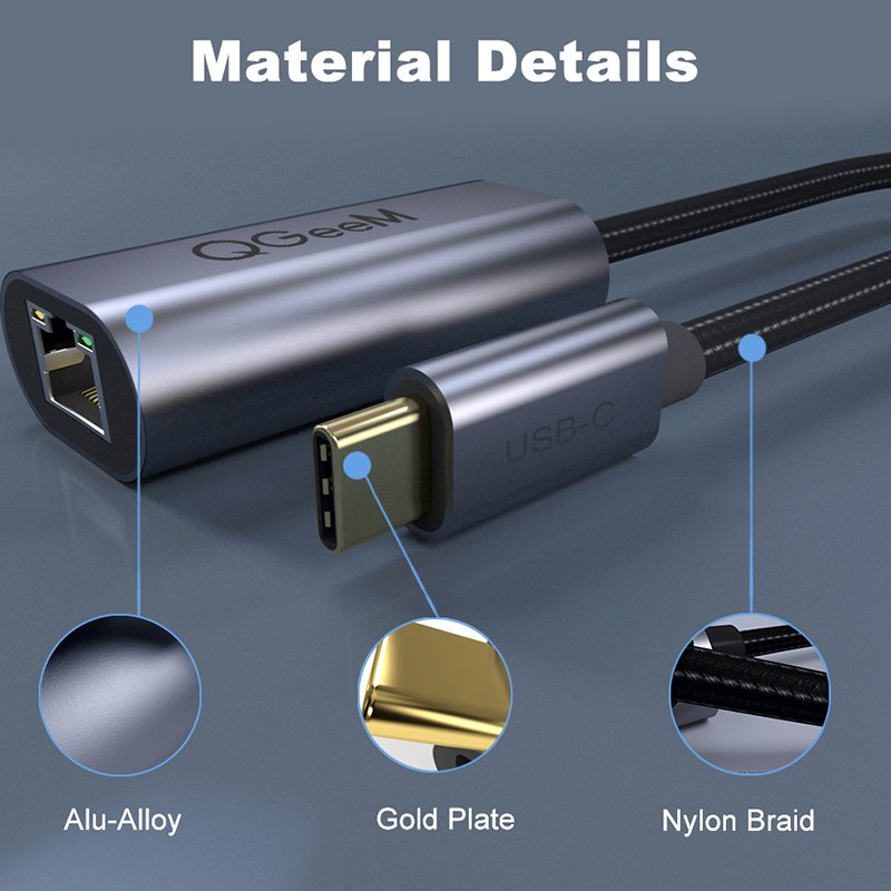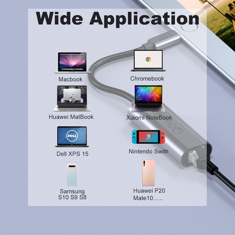 Obtém velocidades de ligação estáveis até 1Gbps, compatível com 100Mbps/10Mbps/1Mbps. O nosso Adaptador de Rede Tipo-C para LAN Gigabit Ethernet RJ45 fornece grandes downloads, velocidade máxima, e sem mais interrupções. (Para atingir 1Gbps, certifique-se de usar CAT6 e cabo ethernet ascendente).