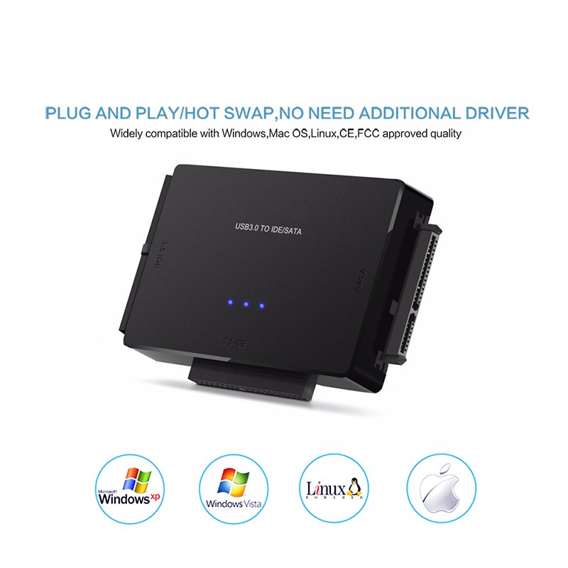 Este adaptador SATA / IDE é universalmente compatível com Windows 10 / 8.1 / 8 / 7 / Vista / XP, Mac OS 9 / 10, Linux, etc.