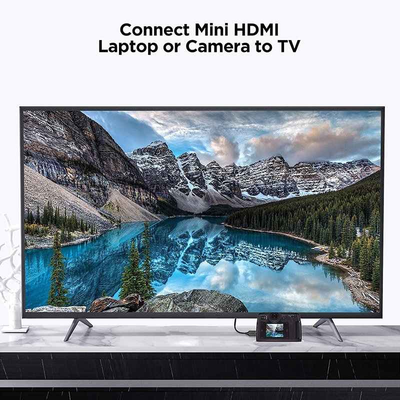 Cabos High Speed Mini HDMI ligam um tablet, câmara digital ou câmara de vídeo a uma TV Ultra 4K (UHD TV), projetor ou monitor com entrada HDMI. Compatível apenas com dispositivos Mini HDMI.